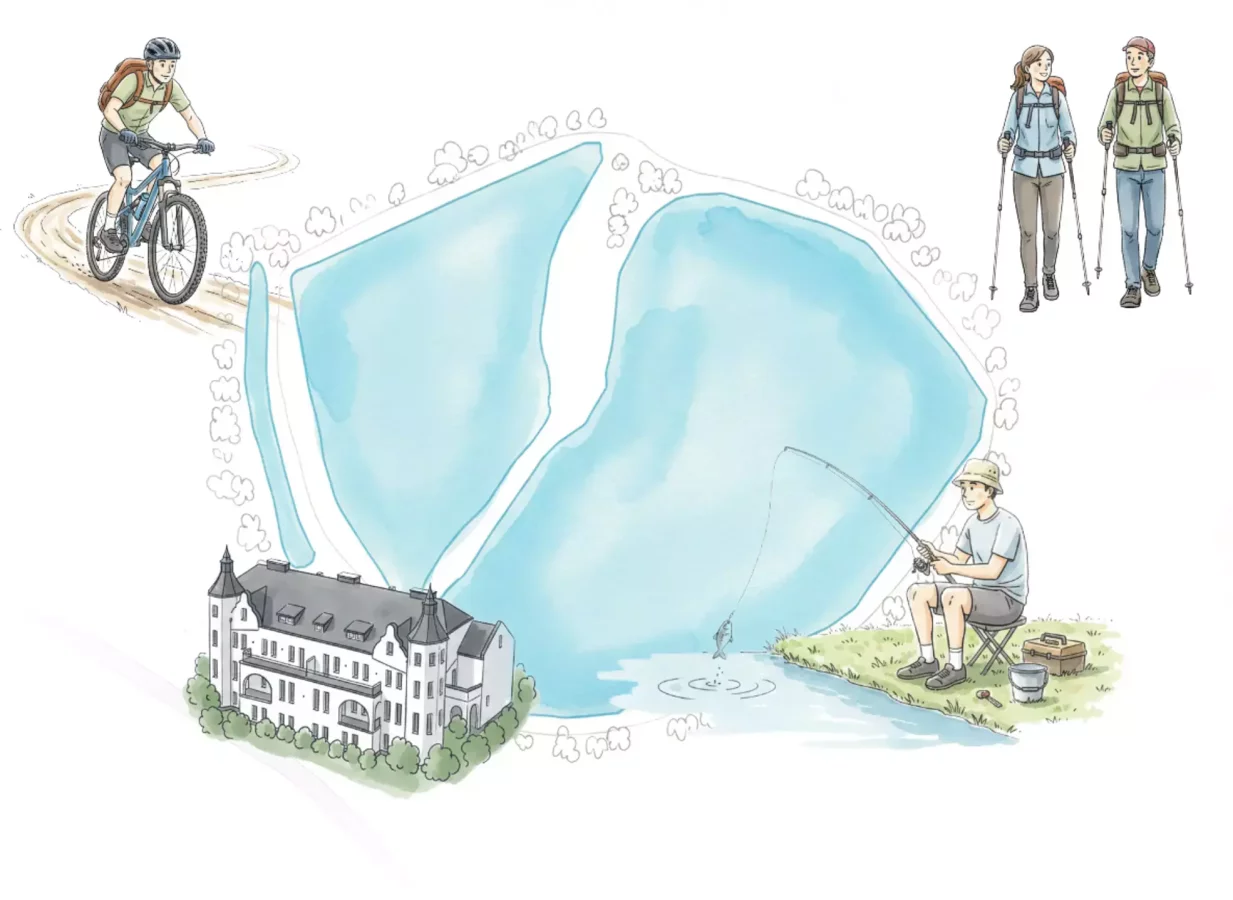 Nowoczesne apartamenty tuż nad stawami karpiowymi to wygodna baza na wędkarski wypad bez kompromisów. W cenie pobytu masz dostęp do Strefy Castle i możliwość łowienia (spławik, feeder) w spokojnym, naturalnym otoczeniu, z dala od miejskiego hałasu. Łowisko działa w formule „złów i wypuść”, bez konieczności posiadania karty wędkarskiej.
